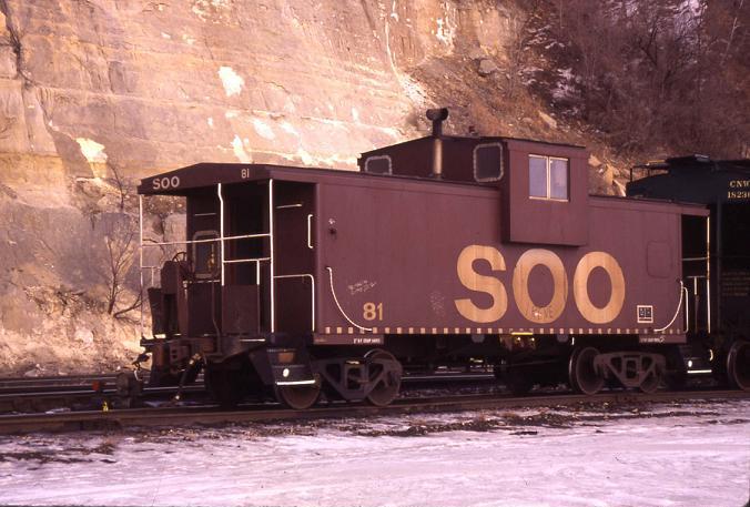 painted in the same way. This view shows Soo Line caboose 81 at Dayton's