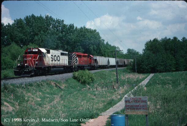 Soo 767 and a sister CP SD40-2 power CP's train 575 through