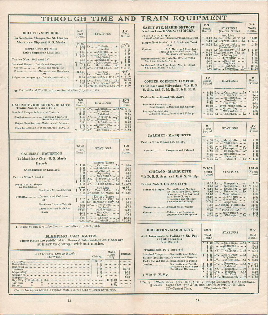 Peninsula of Michigan. Service to Duluth was over the tracks of the Northern