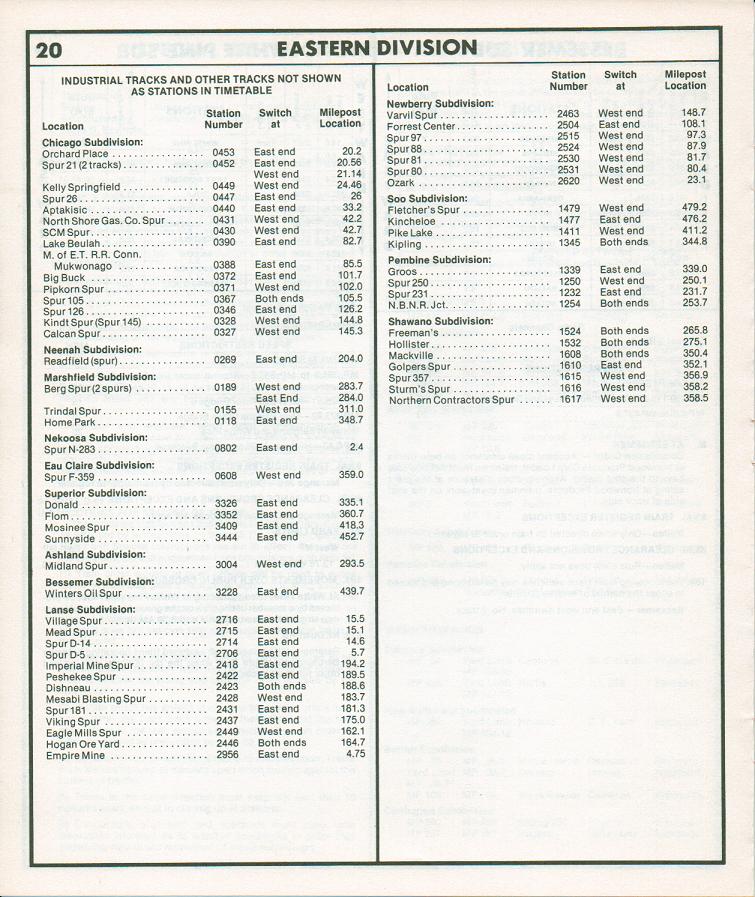 Eastern Division Industrial Tracks and Other Tracks